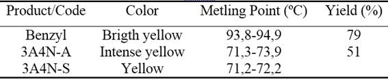 The melting temperatures of the compounds were determined in a digital melting temperature measuring device model WRS-2A (China), in sealed capillaries, the measurement was performed in duplicate for each product.