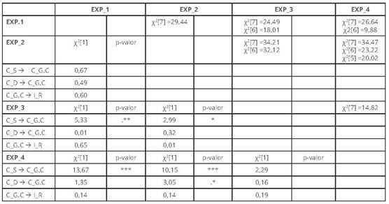 Respecto al contraste de la Hipótesis 3 “valorar la moderación de la variable experiencia” se estima dicho modelo en las cuatro submuestras (EXP_1, EXP_2, EXP_3 y EXP_4).
