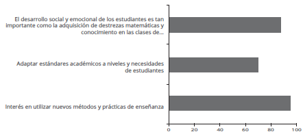 c) Existe consenso entre los profesores de Matemática en que el desarrollo social y emocional de los estudiantes es tan importante como la adquisición de destrezas matemáticas y conocimiento en las clases de Matemática.
