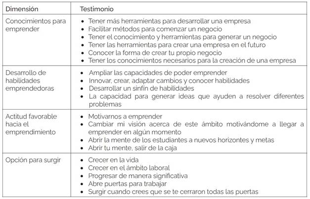 De los hallazgos del estudio sobre los factores que impulsan la intención emprendedora de los estudiantes se concluye que el deseo de emprender es más fuerte entre los discentes que poseen el convencimiento íntimo de que son capaces de emprender (autoconfianza), perciben que la educación emprendedora es útil para su desarrollo personal-profesional, y cuentan con la experiencia laboral que los lleva a valorar la independencia y la autonomía para la toma de decisiones.