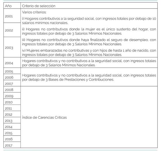 Sobre las Asignaciones Familiares contributivas, son transferencias mensuales destinadas a los niños y jóvenes de 0 a 17 años, administradas por la madre/padre/tutor, siempre que en el hogar haya al menos un trabajador formal, jubilado o pensionista del BPS, con un ingreso total del hogar de hasta $47.491 (1.º de enero de 2018). Los montos de la transferencia varían de acuerdo a la cantidad de beneficiarios y a los ingresos del hogar, siendo de $756 por beneficiario con ingresos del hogar de hasta $28.489 (1.º de enero de 2018), y de $378 por beneficiario con ingresos del hogar entre $28.489 y $47.491 (1.º de enero de 2018). Con respecto al sistema no contributivo, las Asignaciones Familiares del Plan de Equidad incluyen una serie de disposiciones que lo diferencian significativamente del esquema anterior. Entre ellas se encuentran: i) cambio en el algoritmo de selección de beneficiarios, adoptando el Índice de Carencias Críticas elaborado por el Instituto de Economía de la Facultad de Ciencias Económicas y de Administración de la Universidad de la Republica, el cual clasifica los hogares en un índice de 0 a 1 de acuerdo con su nivel de vulnerabilidad en términos sociales, económicos y materiales (DINEM-MIDES, 2014; Vigorito, Arim & Amarante, 2005); ii) incremento en el valor de la trasferencia.