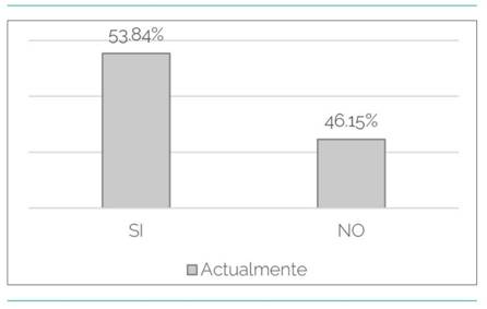 Por un lado se preguntó a las familias si los niños practicaban alguna actividad deportiva. Un 53,84% afirmó que sus hijos sí practicaban alguna actividad deportiva, mientras que el 46,15% restante indicó que no realizaban ninguna (Gráfico 2). Un 14,28% de los que decían practicar se decantaban por el multideporte, un 42,85% por la natación, un 14,28% por el judo (14,28%), un 14,28% por el fútbol (14,28%) y un 14,28% por el kárate. El 71,42% realizaba este tipo de actividad fuera del centro escolar mientras que el 28,57% restante lo realizaba dentro del colegio.