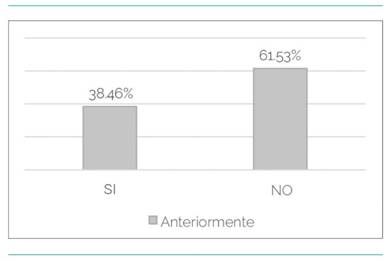 Por otro lado también se preguntó a las familias si los niños habían realizado anteriormente algún tipo de actividad deportiva. Un 38,46% contestó que sí, mientras que más de la mitad (61,53%) especificó que no lo había hecho (Gráfico 3). El deporte practicado anteriormente también había sido muy variado: multideporte (20%), kárate (20%), patinaje (20%), natación (20%) y fútbol (20%). Un 40% lo hizo en el colegio mientras que el 60% restante lo hizo fuera del centro escolar.