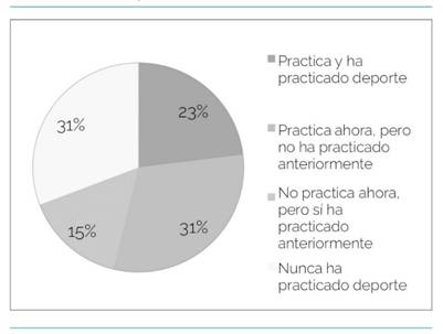 Asimismo, del total de los niños, un 23,07% había practicado deporte anteriormente, manteniendo actualmente la práctica deportiva aunque no el mismo deporte. Un 30,76% practicaba deporte en la actualidad, aunque no lo había hecho anteriormente. Un 15,38% no practicó deporte aunque sí había empezado a hacerlo recientemente. Por el contrario un 30,76% nunca había hecho ningún tipo de actividad deportiva (Gráfico 4).