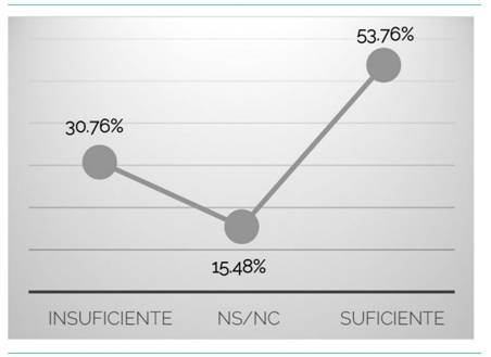 Respecto a la duración del programa, un 30,76% pensó que había sido insuficiente y el 53,76% que había sido suficiente, mientras que el resto no valoró esta cuestión (15,48%) (Gráfico 5). Respecto a los horarios de los entrenamientos, el 84,61% estuvo totalmente de acuerdo en que eran adecuados. Con respecto a la duración de las sesiones, sin embargo, estuvo totalmente de acuerdo un porcentaje menor, el 76,92%.