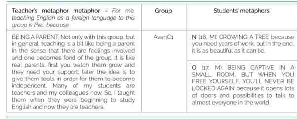 Given the space constraints, this section will not offer a detailed analysis of each metaphor submitted by the participants but rather a group analysis based on the results drawn from the data collected, contrasted with the corresponding teachers’ metaphors.
