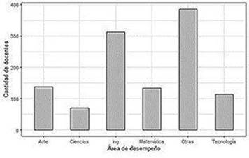 La Figura 3 describe la distribución del área de desempeño en el grupo encuestado, donde se destaca mayor presencia en áreas no STEAM (acrónimo en inglés de Ciencias, Tecnología, Ingeniería, Arte y Matemática), denominadas Otras (33.45 %) y en Ingeniería (27.07 %).