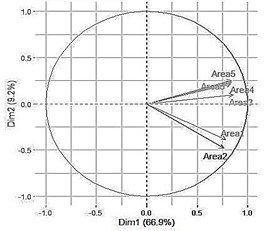 La primera componente principal es una componente de tamaño y queda definida como un promedio ponderado de las puntuaciones de las seis áreas (ver Figura 6).