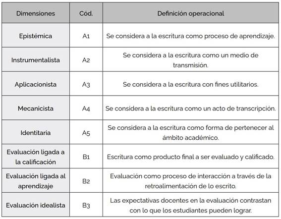 En la Tabla 2 se sistematizan las definiciones operacionales de las dimensiones presentes en la Tabla 1.