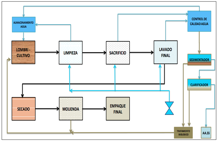 Para el proceso de obtención de harina de lombriz roja californiana se estableció un flujograma de las operaciones que se describe a continuación: (figura 1).