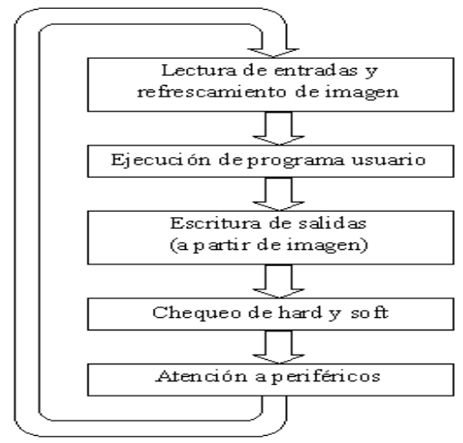 El trabajo del PLC se realiza en forma cíclica y las operaciones que se ejecutan en cada uno de estos ciclos, como se puede observar en la figura 1.