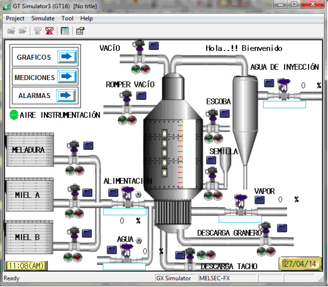 Es un potente registrador histórico que permite visualizar y analizar la información de todas las variables que se configuran de forma sencilla y en línea, lo que permite que un usuario no especializado con orientaciones sencillas pueda configurarlo sin tener que depender de especialistas para ello. Su ambiente de trabajo es amistoso y la presentación es agradable, nos brinda un conjunto de posibilidades que lo hacen sumamente robusto y flexible para todos los requerimientos de este trabajo. Este permite un número prácticamente ilimitado de variables, además todas las señales tanto analógicas como digitales que son procesadas por el autómata son visualizadas en la pantalla de la PC y el OP. Los mímicos posibilitan visualizar las variables y la interacción física de los diferentes elementos del proceso, pueden ejecutarse comandos para el control manual o régimen de operación automático. Para realizar cambios de parámetros y acción de reguladores, el operador con solo pulsar en la pantalla de la PC y el OP los íconos designados para ello, puede monitorear y controlar el proceso. En la figura 3 se muestra la configuración de la pantalla táctil y del SCADA EROS de la PC del tacho cristalizador.