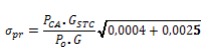 (24)La expresión que precede al radical depende de los valores medidos de PCA y G, así como de los parámetros conocidos: potencia pico de la instalación P. e irradiancia en condiciones estándar de medida GSTC. El resultado de esa expresión sería el valor del pr del SFCR calculado a partir de las mediciones. Por tanto, el error de medición del pr resulta aproximadamente igual al 5 % del valor calculado: