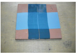 Una vez hecho el análisis químico de pureza del óxido de cromo (III) obtenido a partir del alumbre de cromo (III) y potasio y su correspondiente análisis estadístico se envió una parte del óxido a la Fábrica de Cerámica Blanca y se realizaron las pruebas para la aplicación del óxido de cromo (III) con una base transparente sobre el bizcocho. Como evidencia de los resultados se muestran en la figura 4 una imagen del azulejo de prueba del pigmento y también, la dirección de la fábrica de Cerámica Blanca de Holguín emitió un documento en el que certifica sus cualidades y se compromete a aceptar todo el óxido que se produzca para ser usado en la elaboración de figuras ornamentales.