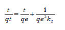 La ecuación de pseudo-segundo orden para las condiciones límites cuando t y qt tienden a 0, ha sido presentada por (Ho y McKay, 1999) y puede representarse como: