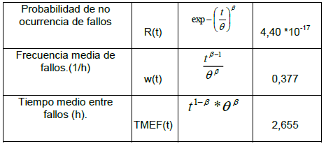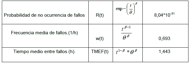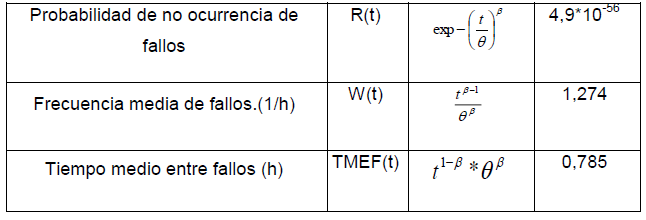 Los resultados de los principales indicadores de fiabilidad que evalúan la efectividad del mantenimiento preventivo aparecen en la tabla 3, con una alta probabilidad de fallos que indican inefectividad en la planificación y ejecución del mantenimiento.