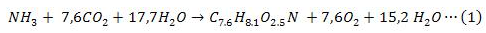 El término microalgas se refiere a un grupo diverso de microorganismos que contienen clorofila, capaces de sintetizar sus propios alimentos a partir del CO2 y el H2O. La microalga Chlorella sp., requiere los siguientes nutrientes para su crecimiento, C, H, O, N, P, K, Mg y otros micros elementos, metálicos. La ecuación estequiométrica (1) que describe su crecimiento fue propuesta por Buhr and Miller (1983):