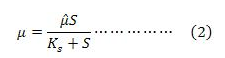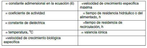 El proceso del crecimiento biológico es descrito normalmente por la función de Monod (1949), ecuación (2), que relaciona la velocidad del crecimiento específico y la concentración limitante de sustrato.