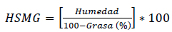 HSMG: humedad sin materia grasa en el queso (%)