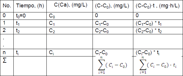 Ci – son las concentraciones de Ca en las muestras, tomadas a cada tiempo (ti).
