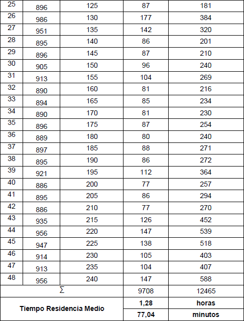 Una vez determinado el tiempo de residencia medio, se analizan los resultados obtenidos.