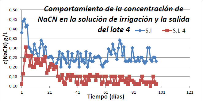 Concentración de cianuro a la salida del lote (SL4) 0,1 a 0,15 g/L