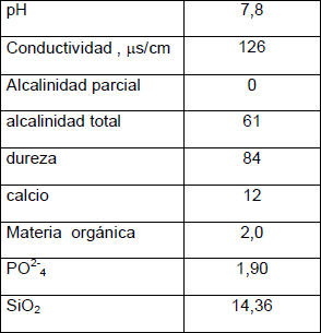 La composición química del agua de proceso con la que se preparan las suspensiones de cieno carbonatado se muestra en la tabla 2.