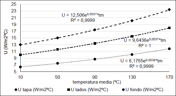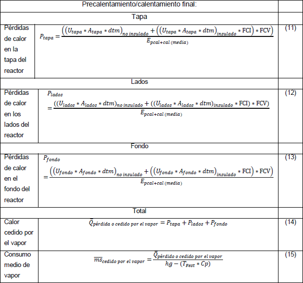 Los valores de U obtenidos de las ecuaciones para cada zona del reactor de multiplicaron por coeficientes determinados por el nivel de aislamiento. Para zonas con aislamiento de 25 mm de espesor el coeficiente fue 0,2 y para zonas con 50 mm fue de 0,1 [11].
