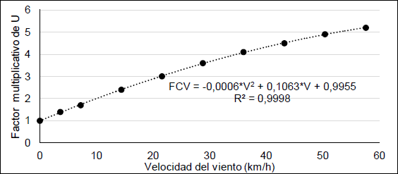 La metodología de cálculo empleada solo tiene en cuenta las pérdidas de calor por convección. En otros trabajos se ha demostrado que las pérdidas por radiación en estos sistemas es muy baja respecto a las pérdidas por convección [12]. En tanto las pérdidas por conducción se desestiman teniendo en cuenta que los soportes tienen muy poca área común con el tanque y casi siempre se encuentran anclados a zonas aisladas (ej. chaqueta). En este sentido la metodología de Spirax-Sarco propone un gráfico simplificado para evitar el cálculo de números adimensionales que rigen este tipo de transferencia de calor. El factor multiplicativo determinado a partir de la figura 3 afecta el valor de U calculado con las ecuaciones de la Fig. 2.