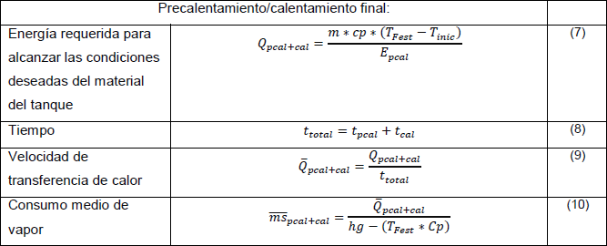 Se asume que la energía necesaria en la esterilización para mantenimiento será igual a las pérdidas del equipamiento. La metodología de cálculo es similar a la planteada para las pérdidas de calor en la etapa de arrancada (Paso 1).
