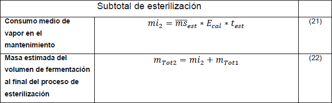 En la arrancada y esterilización se realizaran los mismos cálculos planteados para el proceso de esterilización por inyección por vapor directo.