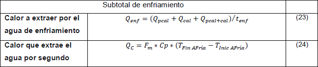 Para proceso de esterilización se debe cuantificar la energía que se debe extraer para enfriar el cultivo hasta los 36 ºC y además la energía que es capaz de extraer el agua de enfriamiento por unidad de tiempo. Ambos balances se ponen en función del tiempo de duración de la etapa de enfriamiento y se emplea la herramienta “solver” para igualar ambos tiempos. Posteriormente se realiza un resumen de la etapa (paso 2).