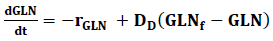 La concentración inicial de glucosa de 3 mM, garantiza que en la etapa discontinua se agote prácticamente toda la glucosa y al comenzar la etapa semicontinua sea menor su concentración. La concentración inicial de glucosa fue determinada por tanteo, a partir de simulaciones previas. La concentración de glutamina en el alimentado fue calculada a partir de la relación glutamina- glucosa, ⁄ , según [14].