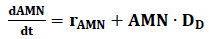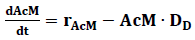 Un balance de masa macroscópico fue realizado para representar las diferentes fases de los sistemas de cultivo. El proceso se consideró isotérmico y se asumió mezcla perfecta en el interior del recipiente. No se consideró la ocurrencia de limitación del crecimiento celular por falta de oxígeno. La concentración de algunas especies químicas tales como la glucosa (GLC), la glutamina (GLN), el lactato (LAC) y el amoniaco (AMN) se incluyeron en los balances de masas. Además, también se tuvieron en cuenta las concentraciones de células viables y muertas, así como la concentración del AcM.