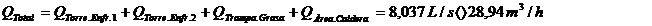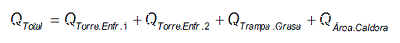 Qtotal = Qtorre enf 1 + Qtorre enf 2 + Qtrampa grasa + Qarea caldera = 1,173 L/s <> 4,223 m3/h