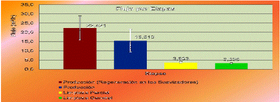En las figuras 7 y 8 se muestran los valores del flujo promedio general de residuales líquidos para cada etapa de producción y el rango de variación del mismo.