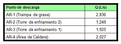 Ocurre lo mismo en la etapa de limpieza parcial, como el proceso de refinación está detenido, la torre de enfriamiento y área de caldera (suavizadores) no vierten residuales. Por tanto, el valor del flujo promedio general será el siguiente: