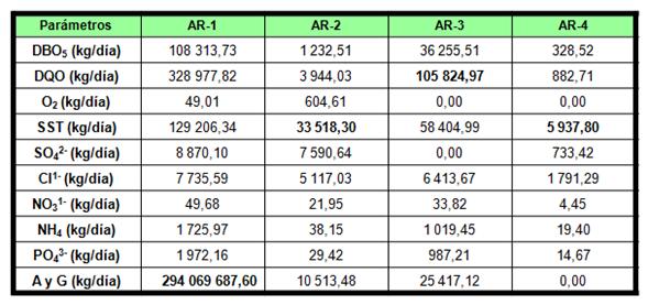 Para determinar la carga contaminante de los residuales nos apoyamos en la ecuación: