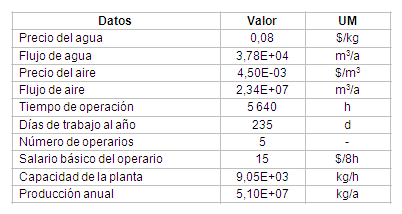 Los resultados de los balances de masa y energía por proceso unitario se presentan en la tabla 2.