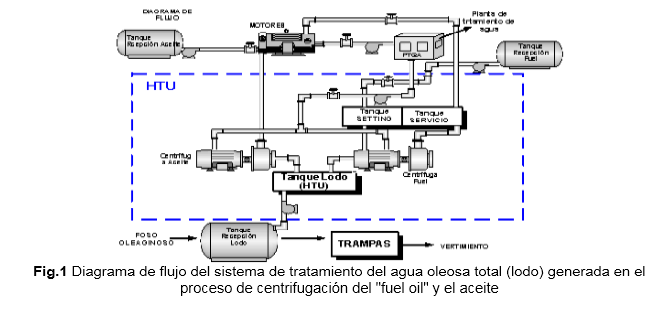 En la figura 1 se muestra el diagrama de flujo del sistema de tratamiento del residual líquido oleoso (lodo) generado en el proceso de centrifugación del "fuel oil" y el aceite.