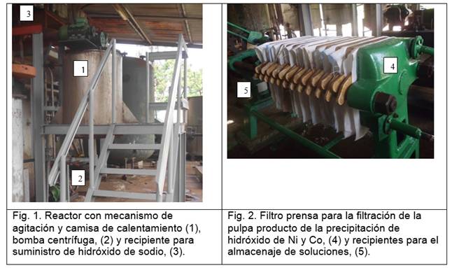 Se alimentó al reactor, la solución inicial de sulfato de níquel, que contiene cobalto y manganeso, se calentó hasta 70 ºC, se adicionó lentamente la cantidad prefijada de hidróxido de amonio, se agitó por espacio de 5 minutos, se midió el pH y se inició la adición del hidróxido de sodio con el flujo especificado hasta el pH de trabajo, igual a 13. Una vez alcanzado ese valor de pH, se mantuvo la agitación mecánica durante 1 h. Posteriormente, la pulpa de hidróxidos formada en el reactor, se bombeó a través de la bomba centrífuga hasta el filtro prensa, en el cual se obtuvo, por un lado, el licor de desecho y por otro, la torta de sólidos, conteniendo al hidróxido de níquel o producto de interés. La torta de sólidos fue lavada con agua a 70 oC en el reactor y luego se bombeó a presión para el filtro. Finalmente la torta se extrajo del filtro y se secó en estufa a la temperatura de 60 oC.