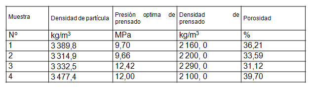 Los valores de densidades de partícula, estuvieron entre 3300 y 3500 kg/m3, los cuales fueron ligeramente inferiores al rango entre 3700 y 3900 kg/m3, reportado por(4), para hidróxido de níquel, obtenido a partir de la reacción de una solución de nitrato de este metal con soluciones de hidróxido de amonio, en presencia y ausencia de ultrasonido.
