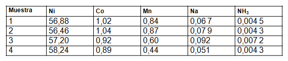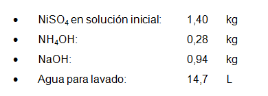 La cantidad de hidróxido de amonio, se suministró de modo tal que se pudiera garantizar una relación molar promedio NH3/Ni 2+ igual a 0,5.