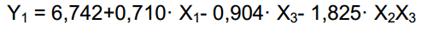 El coeficiente positivo de la concentración de glucosa (X1) indica que un aumento en la misma produce un incremento en la formación de biomasa. Mientras que los coeficientes negativos de la concentración de peptona (X3) y el múltiplo entre las concentraciones de peptona y extracto de levadura (X2X3) indican que un aumento en los mismos presenta un efecto reductor de la formación de biomasa.
