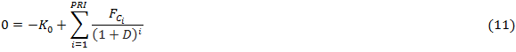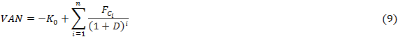 Son aplicados además indicadores de análisis económico como el Valor Actual Neto (VAN), Tasa Interna de Retorno (TIR) y Período de Recuperación Descontado (PRD), 23 así como indicadores medioambientales como los costos de externalidades,24 según las ecuaciones: