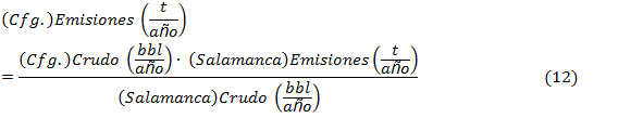 Una vez conocidos estos indicadores para la refinería de petróleo de Salamanca, y el valor de crudo procesado en un año para la refinería de petróleo Camilo Cienfuegos, se pueden calcular los valores de emisiones de SO2 en un año y los costos externos de dichas emisiones para el caso de estudio, según las siguientes ecuaciones.