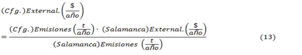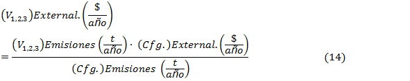 Para la realización de este trabajo es necesario calcular los costos externos o externalidades para las variantes tecnológicas V1, V2 y V3. Para obtener estos valores se aplica la siguiente ecuación.