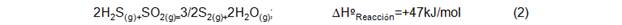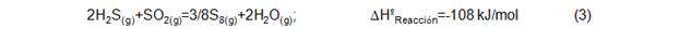 Como promedio, alrededor del 70 % del H2S y el SO2 reacciona por la ecuación (3)