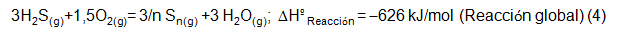 El gas residual del proceso Claus es enviado a un reactor de reducción que contiene un catalizador de óxido de Cobalto‐Molibdeno (CoMo) soportado sobre base alúmina de alta pureza, donde ocurren las reacciones de hidrogenación (en presencia de hidrógeno)13,14 y de hidrólisis (en presencia de vapor de agua).15 Estas reacciones se muestran en la figura 2.
