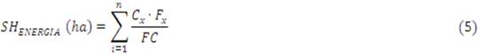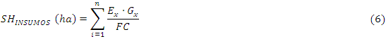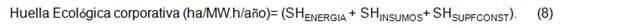 De igual forma para las mismas condiciones se aplica el cálculo de la huella ecológica corporativa, por la metodología de Domenech, (22 según las ecuaciones: